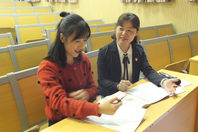 郴州市六中黨委書記羅柳莉(右)指導青年教師思政課備課