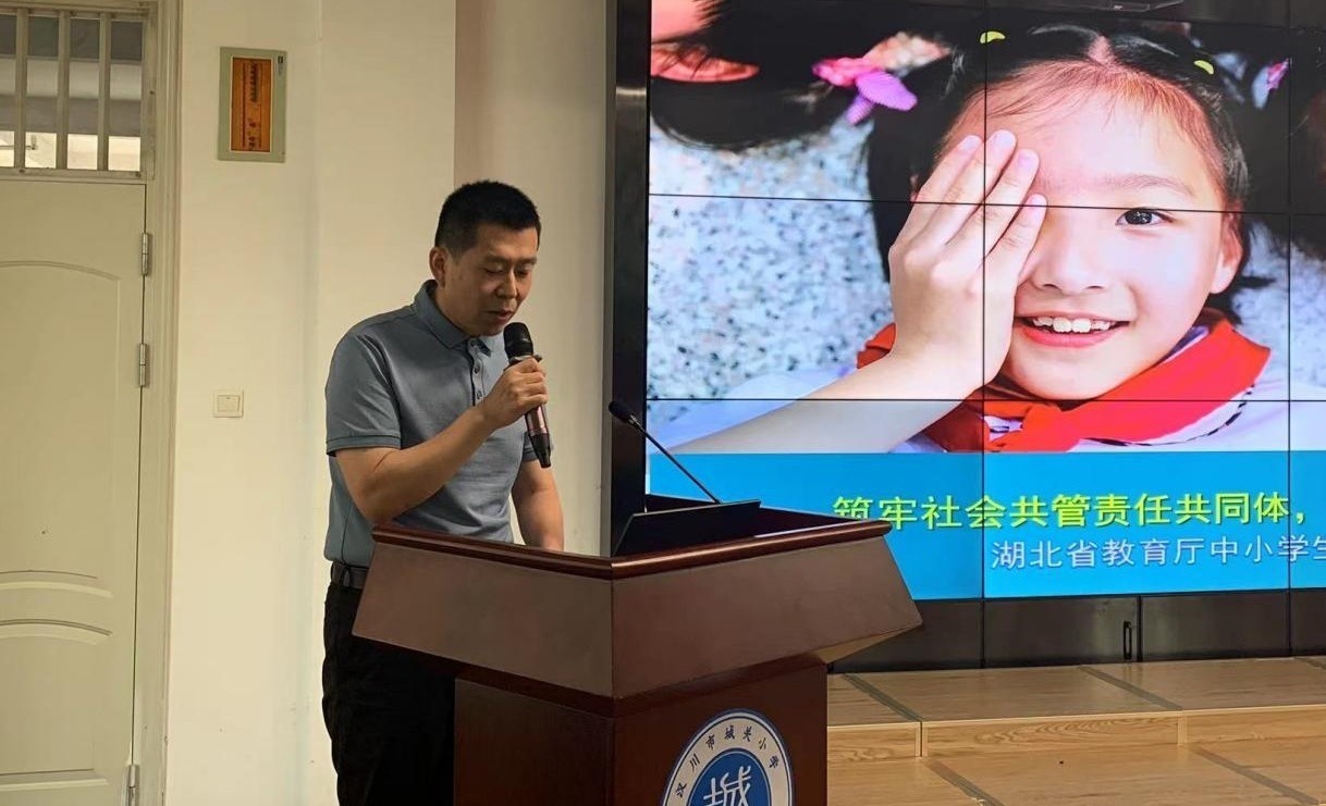 為進一步提升湖北省兒童青少年近視防控宣教能力,6月2日,湖北省教育廳在漢川市城關小學開展第28個全國“愛眼日”主題宣傳教育活動。湖北省教育廳體衛(wèi)藝處處長丁雪峰及有關負責人,全國青少年學生視力健康管理示范區(qū)、近視防控改革試驗區(qū)和試點縣(市、區(qū))教育局有關負責人和所在地的省中小學生近視防控宣講團成員,漢川市城區(qū)中小學校長、部分城區(qū)幼兒園園長共65人參與活動。