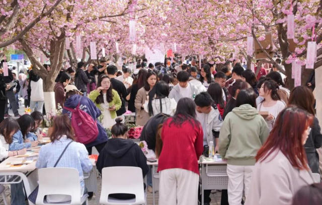 近日,陜西省西京學(xué)院舉辦了第五屆櫻花節(jié)。櫻花樹(shù)下,學(xué)生三五成群,或駐足觀賞,或拍照留念。校園內(nèi)櫻花爛漫,與學(xué)子們的青春活力交相輝映,構(gòu)成了一幅美麗的畫(huà)卷。