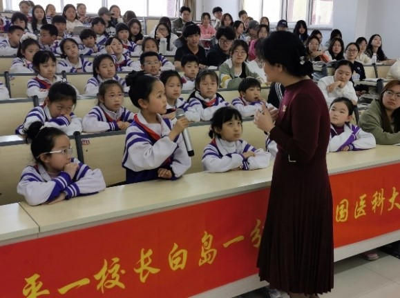 遼寧省沈陽市和平一校長白島一分校不斷探索思政課改革創(chuàng)新的新路徑,將大中小學(xué)思政課一體化建設(shè)精神有機(jī)融入教育教學(xué)全過程,于近日組織學(xué)校的師生和家長走進(jìn)中國醫(yī)科大學(xué),與中國醫(yī)科大學(xué)的學(xué)生共上一堂“大思政課”。