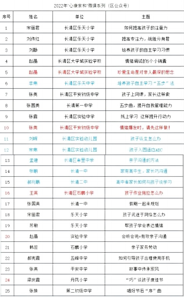 區(qū)域?qū)用妫?/span>面向全區(qū)舉辦專家講座。2022年通過網(wǎng)絡(luò)直播的形式面向全區(qū)師生和家長舉行了七場專家講座,旨在普及家庭教育和心理健康教育理念,幫助家長了解孩子成長過程中的心理需求,喚醒家長覺察內(nèi)省的能力,整體推進(jìn)全區(qū)的家庭教育水平。還舉辦家庭教育專場和以《心康家和賦能教育新生態(tài)》為主題的長清區(qū)家庭教育年會;研發(fā)“家和心康”系列微課。自2022年開始我們聚焦社會關(guān)注、家長關(guān)心、學(xué)校關(guān)切的熱點(diǎn)、焦點(diǎn)問題,研發(fā)出涵蓋假期規(guī)劃、學(xué)會溝通、親子關(guān)系、學(xué)習(xí)輔導(dǎo)等方面的系列微課40余期,在教體局公眾號上向全區(qū)家長推送,家長反饋良好。