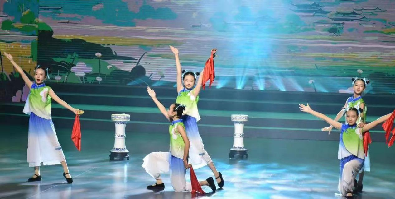8月3日晚,江西景德鎮(zhèn)市浮梁縣第一小學(xué)的5名學(xué)生登上舞臺。她們說著流暢而又風(fēng)趣的景德鎮(zhèn)方言,敲擊著色澤雅麗、清麗脫俗的景德鎮(zhèn)青花瓷大鼓,搭配著獨特的唱腔和優(yōu)美的舞蹈,贏得了專家評委的好評和現(xiàn)場觀眾熱烈的掌聲。參與《能干娃》演出的5名小演員是從該校500多名學(xué)生中選拔出來的。2023年3月到7月,她們開始了長達4個多月的訓(xùn)練,從學(xué)習(xí)景德鎮(zhèn)方言,到練習(xí)鼓點技法,再到學(xué)習(xí)唱腔和表演,節(jié)目質(zhì)量逐步得到提升。