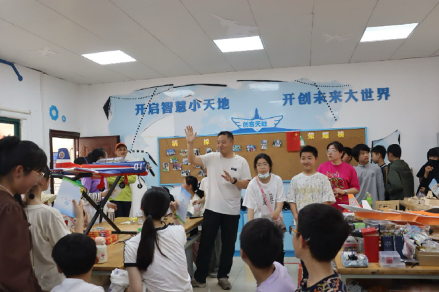 航模社團(tuán)蔣波老師給孩子們講解飛行原理