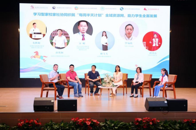 在深圳市光明區(qū)家庭教育指導(dǎo)服務(wù)中心副主任朱勝源主持下,多方代表通過(guò)圓桌論壇形式,共議深圳市教育創(chuàng)新改革“每周半天計(jì)劃”在馬田小學(xué)的落地實(shí)踐和啟示。