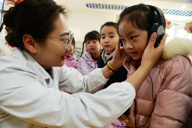 當(dāng)日,江蘇省鎮(zhèn)江市潤州區(qū)蔣喬社區(qū)衛(wèi)生服務(wù)中心醫(yī)務(wù)人員來到童蕾藍(lán)天幼兒園,開展“愛耳護(hù)耳 從小做起”活動,通過耳機(jī)使用指導(dǎo)、紙杯傳聲筒游戲、耳健康檢查、護(hù)耳知識講解等形式,引導(dǎo)小朋友從小養(yǎng)成愛耳護(hù)耳好習(xí)慣,迎接全國愛耳日的到來。(中國教育報-中國教育新聞網(wǎng) 通訊員 石玉成 攝)