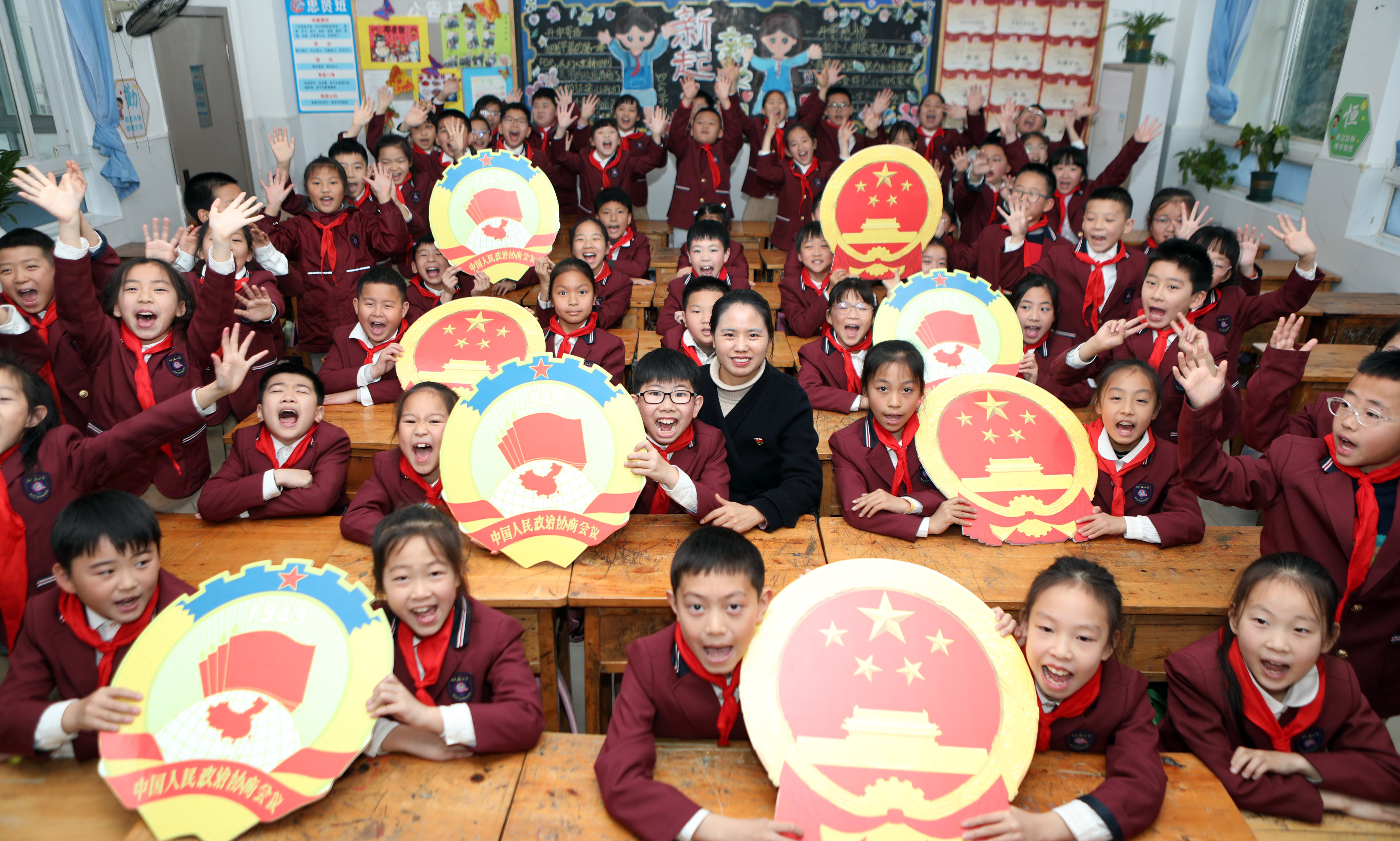 重慶市永川區(qū)紅旗小學四年級(5)班學生學習兩會知識。通訊員 陳仕川 攝