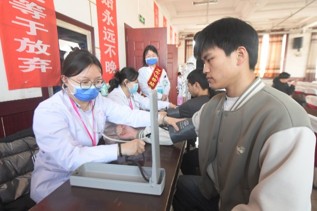 3月6日,在河北省石家莊新樂市醫(yī)院體檢中心,新樂市第二中學高三學生正在體檢。日前,河北省石家莊高三體檢工作全面展開。高考體檢是高考的重要環(huán)節(jié),考生可以了解自己的身體健康狀況。同時,體檢對考生準確填報志愿具有重要指導作用,體檢結(jié)果也將作為高校錄取新生的重要參考依據(jù)。 中國教育報-中國教育新聞網(wǎng)通訊員 賈敏杰 攝