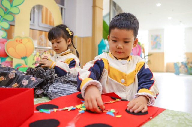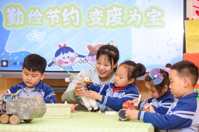 老師指導小朋友用廢棄物品制作玩具。通訊員 張鷹 攝