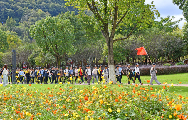 10月31日,浙江省臺州市仙居縣第七小學(xué)黨支部會(huì)同校工會(huì)開展“快樂毅行 健康成長”秋游活動(dòng),近300名五年級學(xué)生沿著仙居縣永安溪綠道上毅行,零距離領(lǐng)略大自然的美麗風(fēng)光。中國教育報(bào)-中國教育新聞網(wǎng)通訊員 王華斌 攝