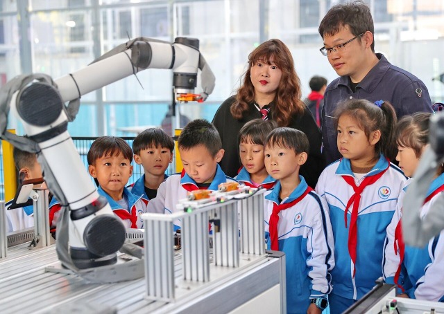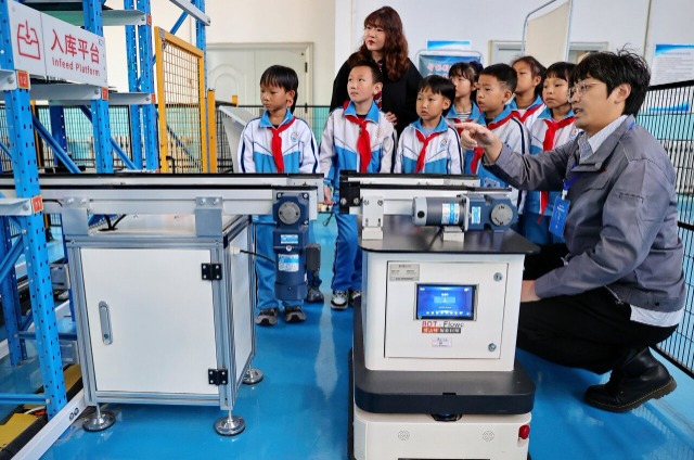 當(dāng)日,河北省秦皇島市海港區(qū)交建里小學(xué)聯(lián)合燕山大學(xué)工程訓(xùn)練中心舉辦“學(xué)習(xí)科普知識 感受智能制造”活動。該活動由學(xué)校教師帶領(lǐng)學(xué)生走進(jìn)燕山大學(xué)工程訓(xùn)練中心,由工作人員為學(xué)生介紹智能制造系統(tǒng)構(gòu)成、智能物流/倉儲、智能檢測、機(jī)器人等相關(guān)內(nèi)容,旨在讓學(xué)生感受智能制造的魅力和科技發(fā)展成就,培養(yǎng)學(xué)生勇于探索、嚴(yán)謹(jǐn)求實的科學(xué)精神。(中國教育報-中國教育新聞網(wǎng) 通訊員 曹建雄 攝)