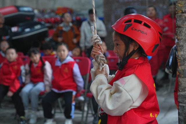 孩子們?cè)隗w驗(yàn)高空繩降 秦廷富 攝