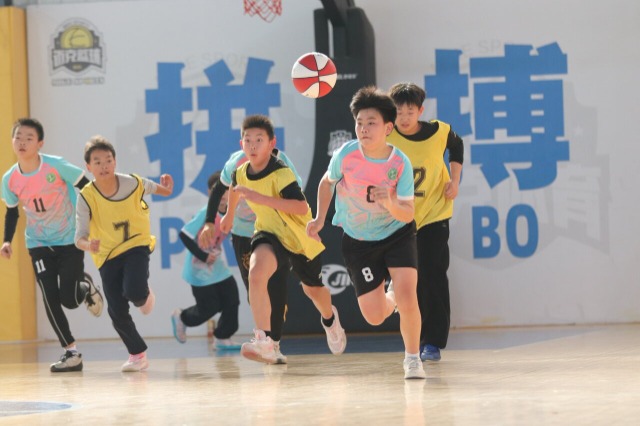 學(xué)生們在參加山東省高密市中小學(xué)生籃球聯(lián)賽。通訊員 李海濤 攝
