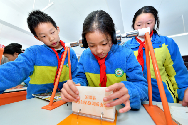 近日,中國流動科技館湖北省區(qū)域襄陽市??嫡狙舱棺哌M??悼h歇馬鎮(zhèn)小學(xué),讓學(xué)生們“零距離”學(xué)習(xí)科技知識,感受科技趣味,接受科普教育。近年來,??悼h開展各類送科普服務(wù)進校園活動,讓學(xué)生增長科學(xué)知識,感受科技魅力。中國教育報-中國教育新聞網(wǎng)通訊員 楊韜 來長發(fā) 攝