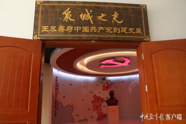 “泉城之光——王盡美與中國(guó)共產(chǎn)黨創(chuàng)建史展”展陳館正門(學(xué)校供圖)
