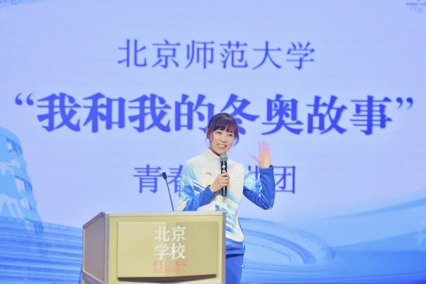 為積極傳播冬奧知識,弘揚奧林匹克精神,展現(xiàn)北師大師生參與冬奧盛會的精氣神,學校成立了“我和我的冬奧故事”青春宣講團。在北京學校通州校區(qū),北師大冬奧青春宣講團成員劉則正首先帶來了北京2022年冬奧知識小問答,以互動問答的形式依次介紹了北京2022年冬奧會吉祥物、會徽、競賽場館、辦奧理念等內(nèi)容。接下來,北師大冬奧青春宣講團的4名宣講員帶來冬奧主題宣講。冬奧會開幕式引導員代表詹圣念,回顧了4個月里高質(zhì)量完成北京賽區(qū)標志性場館和唯一新建冰上競賽場館——國家速滑館(“冰絲帶”)的賽會志愿者工作,國家速滑館的志愿者代表吳雙同、劉宇嘉、衛(wèi)民,講述了冬奧志愿者厚植家國情懷、勇于擔當奉獻的感人故事。