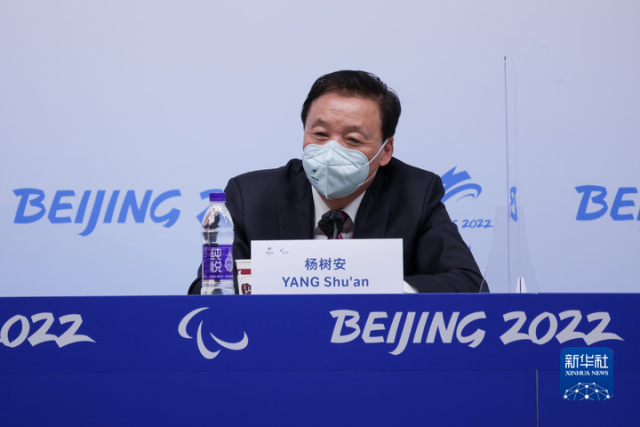 3月13日,北京冬奧組委副主席楊樹安在北京冬奧組委在北京冬殘奧會(huì)主新聞中心召開的賽事總結(jié)新聞發(fā)布會(huì)上發(fā)言。新華社記者許雅楠攝