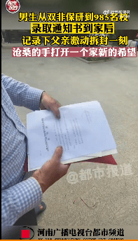 在河南安陽(yáng)的趙同學(xué)收到了山東大學(xué)的錄取通知書。趙同學(xué)本科就讀于內(nèi)蒙古科技大學(xué),因心疼父母不易,大學(xué)期間寒暑假去飯店兼職過(guò)服務(wù)員,到電子廠兼職過(guò)臨時(shí)工,從未向家里要過(guò)生活費(fèi)。除了生活上自強(qiáng),趙同學(xué)的成績(jī)也非常優(yōu)秀,最終成功保研至山東大學(xué)。錄取通知書到家之后,趙同學(xué)決定讓父親來(lái)拆封,父親用滄桑的手激動(dòng)地一點(diǎn)點(diǎn)打開信封,也打開了一個(gè)家新的希望。