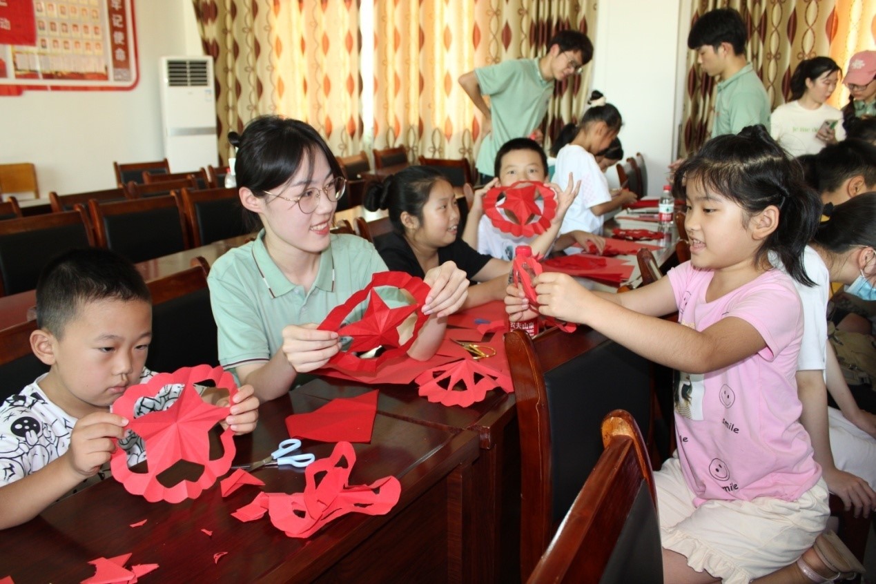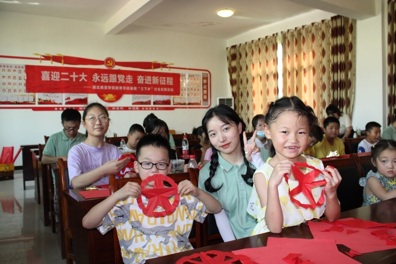 中國教育報-中國教育新聞網(wǎng)訊(記者 梁丹 通訊員 楊衛(wèi)平 戴小雨)“課堂上,叔叔阿姨教我們用手工剪紅色五角星、菱花和團花,還了解了非物質(zhì)文化遺產(chǎn)的傳承歷史,這個暑假很充實?!?月17日,在湖北商貿(mào)學(xué)院教育學(xué)院大學(xué)生“星火”志愿服務(wù)隊組織開展的關(guān)愛農(nóng)村留守兒童活動中,湖北省團風(fēng)縣黃土崗村兒童盧毓婉興奮地說。