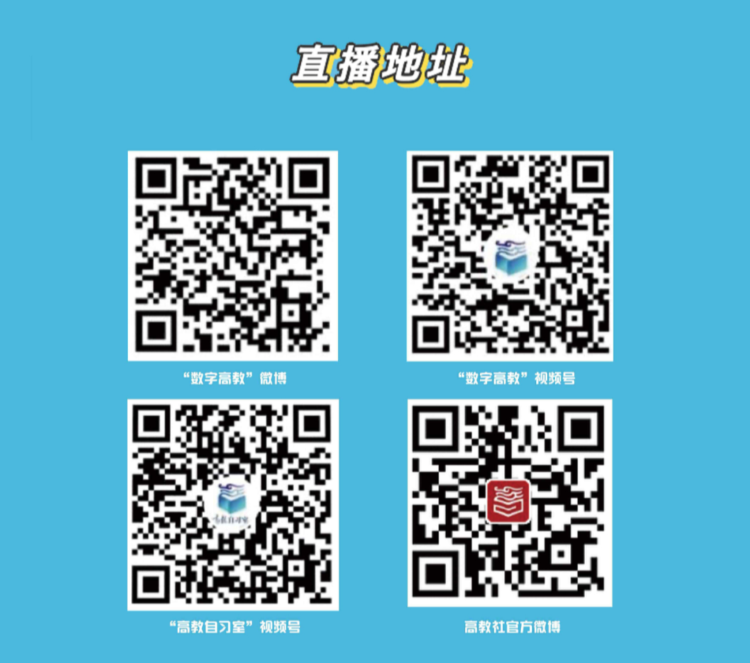 本次活動將通過數(shù)字高教視頻號、數(shù)字高教微博、高教自習室視頻號、高等教育出版社官方微博進行全網(wǎng)直播。