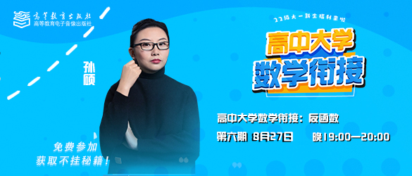 中國教育新聞網(wǎng)訊(記者 焦小新)高等教育出版社舉辦的“高中大學(xué)數(shù)學(xué)銜接課”系列公益活動第六期將于8月27日晚7點(diǎn)至8點(diǎn)播出。