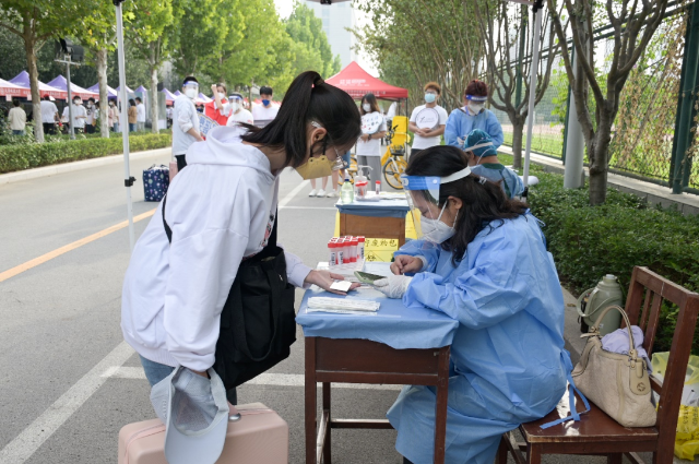 9月3日清晨起,新生在學(xué)校南門和西門通過迎新專用入口依次完成“身份驗(yàn)證—體溫檢測—健康碼查驗(yàn)—核酸檢測”后,在志愿者引領(lǐng)下,到各自學(xué)院進(jìn)行注冊報(bào)到。