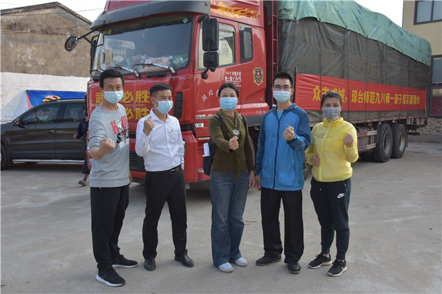 2020年3月,吳小玲老師(居中)帶領(lǐng)原瓊臺(tái)師范學(xué)校98師一班的學(xué)生代表及其親屬為武漢捐贈(zèng)一車瓜菜。