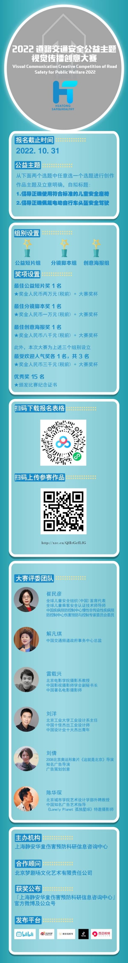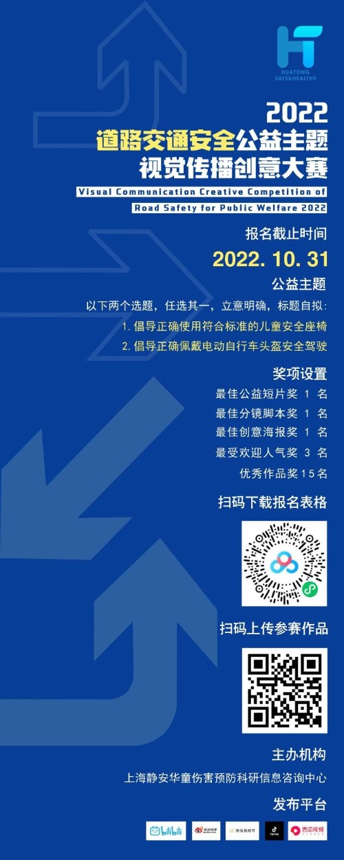 據(jù)了解,此次“2022年道路交通安全公益主題視覺傳播創(chuàng)意大賽”是由上海靜安華童傷害預(yù)防科研信息咨詢中心發(fā)起,目的是提高公眾對于兒童乘車安全、電動自行車駕乘安全的意識,減少道路交通傷害,倡導(dǎo)“一盔一椅”出行,共同營造安全暢通、文明有序的道路交通環(huán)境。