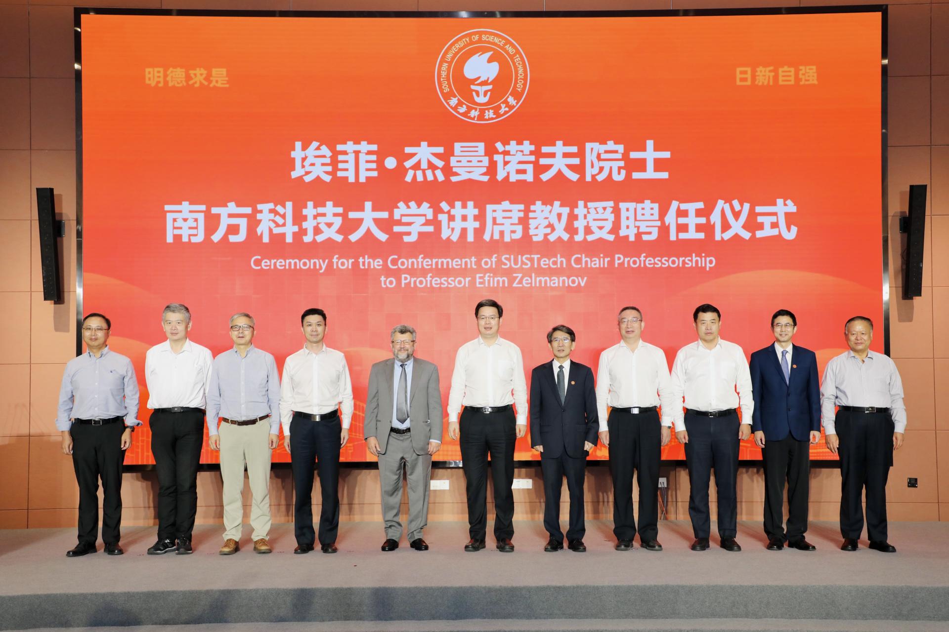中國教育新聞網(wǎng)訊(記者 焦小新)9月14日,世界著名數(shù)學(xué)大師埃菲·杰曼諾夫(Efim Zelmanov)院士南方科技大學(xué)講席教授聘任儀式在南方科技大學(xué)會議中心舉行。全國人大常務(wù)委員會副委員長、中國科學(xué)院院士丁仲禮,中國科協(xié)黨組書記、副主席、中國工程院院士張玉卓,教育部副部長、中國工程院院士鐘登華,廣東省委常委、副省長、中國科學(xué)院院士王曦,深圳市委副書記、市長覃偉中,中國數(shù)學(xué)會理事長、中國科學(xué)院院士田剛,國家自然科學(xué)基金委數(shù)物部主任、中國科學(xué)院院士江松,國際工業(yè)與應(yīng)用數(shù)學(xué)聯(lián)合會主席、中國科學(xué)院院士袁亞湘,南方科技大學(xué)校長、中國科學(xué)院院士薛其坤等分別在線上線下出席聘任儀式。