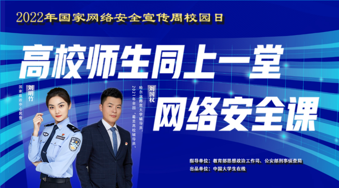 在教育部思想政治工作司、公安部刑事偵查局指導(dǎo)下,中國大學(xué)生在線錄制的“高校師生同上一堂網(wǎng)絡(luò)安全課”于9月6日上午9時(shí)正式上線發(fā)布。國家反詐中心民警劉明竹深入淺出講解了電信網(wǎng)絡(luò)詐騙的概念、高發(fā)類型和防范舉措;2021年全國“最美高校輔導(dǎo)員”、哈爾濱師范大學(xué)輔導(dǎo)員劉國權(quán)向同學(xué)們介紹校園高發(fā)的網(wǎng)絡(luò)詐騙案件的類型以及防范舉措,以生動(dòng)、真實(shí)的案例向高校師生展現(xiàn)防范網(wǎng)絡(luò)詐騙的必要性。
