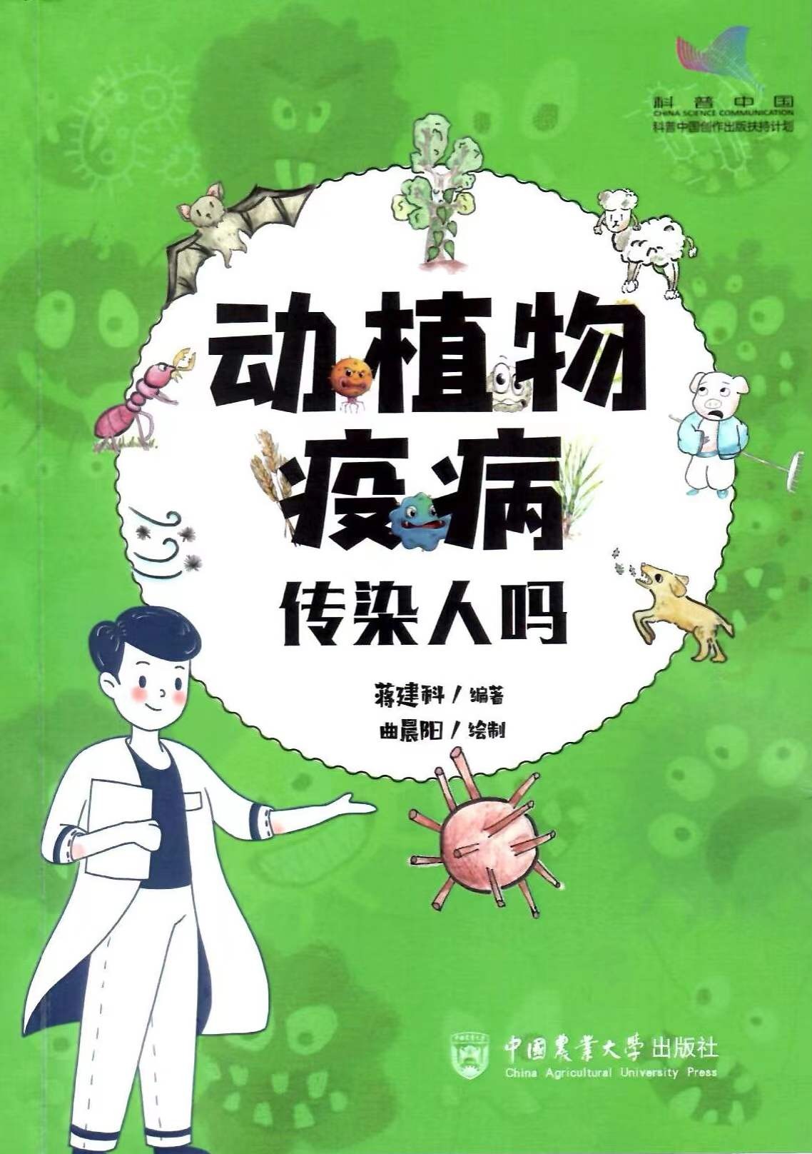 科普?qǐng)D書(shū)《動(dòng)植物疫病傳染人嗎》由人民日?qǐng)?bào)社高級(jí)編輯蔣建科編著,中國(guó)農(nóng)業(yè)大學(xué)附屬小學(xué)學(xué)生曲晨陽(yáng)繪制插圖。該書(shū)以常見(jiàn)動(dòng)植物疫病為主線,幫助公眾科學(xué)認(rèn)識(shí)各種病源,以及日常生活中的注意事項(xiàng)和防護(hù)方法。本書(shū)獲得“科普中國(guó)創(chuàng)作出版扶持計(jì)劃”項(xiàng)目的支持。