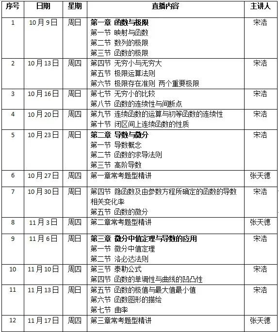 高等數(shù)學(上)習題課第二講的直播時間為10月13日19:00~21:00,課程設置包括函數(shù)與極限、無窮小與無窮大、極限運算法則、極限存在準則和兩個重要極限。讓我們繼續(xù)趁熱打鐵,一起成為解題高手!