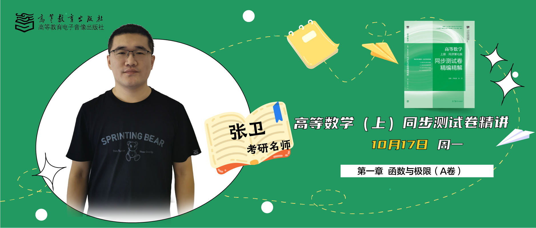 “高等數(shù)學伴學活動”系列二——高等數(shù)學(上)同步試卷精講將于10月17日19:00—21:00正式上線,課程內(nèi)容將圍繞《高等數(shù)學上冊 同濟第7版 同步測試卷精編精解》同步測試卷中的試題進行精解。溫馨提示:請自備教材。