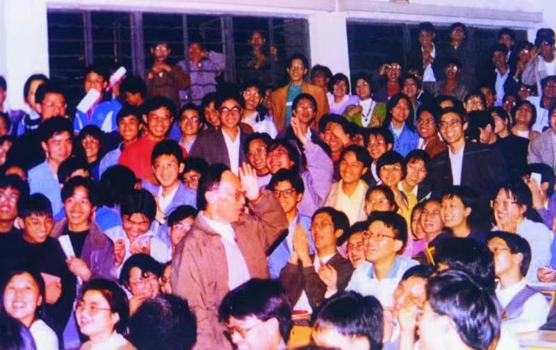 1995年,楊叔子與學(xué)生在文化素質(zhì)教育講座后交流