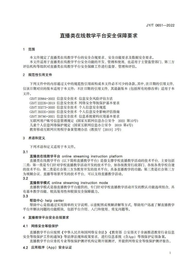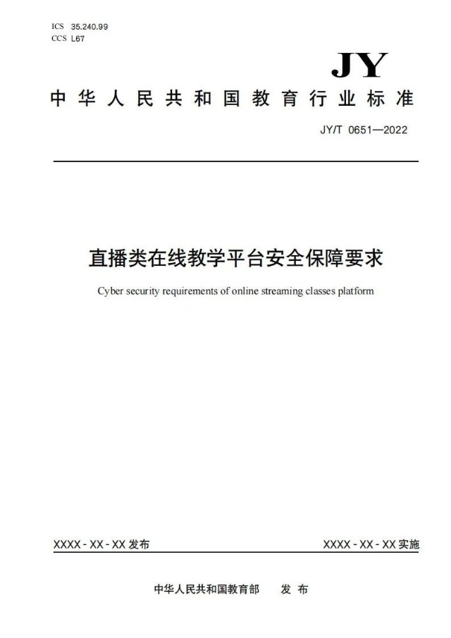 日前,教育部研究制定《直播類在線教學(xué)平臺安全保障要求》,規(guī)定了直播類在線教學(xué)平臺的安全合規(guī)要求、安全功能要求及數(shù)據(jù)安全要求,并作為教育行業(yè)標準予以發(fā)布。