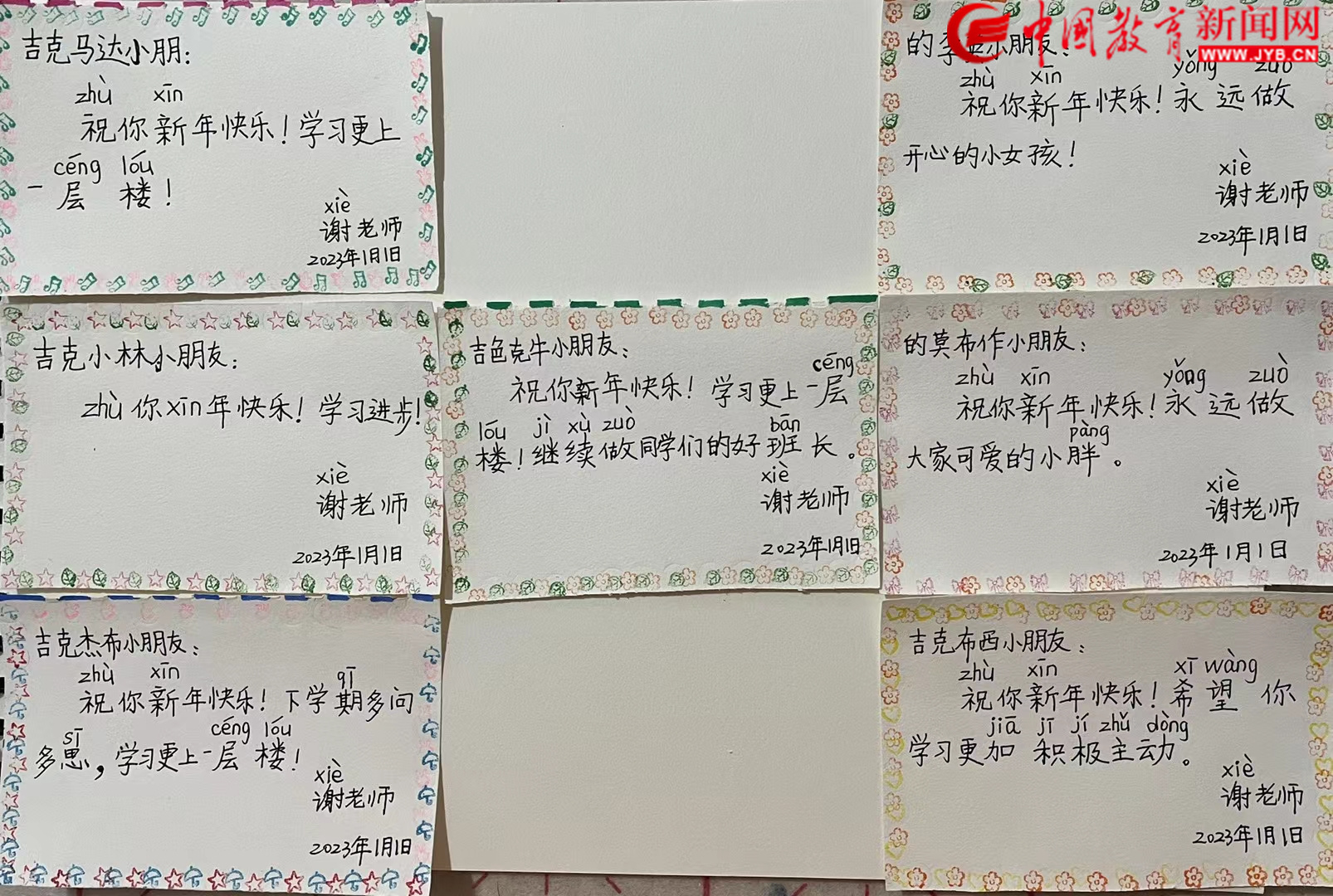給孩子們梳理出1月的任務(wù)單,給孩子們做了新年賀卡。這學(xué)期學(xué)了如何寫(xiě)賀卡,學(xué)以致用——要求他們收到賀卡后也要做賀卡。不計(jì)過(guò)往,不忘初心。(受訪者/圖片提供:四川省涼山州美姑縣瓦古鄉(xiāng)扎甘洛村教學(xué)點(diǎn)支教志愿者 謝彬蓉)