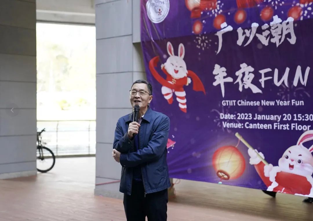廣以常務(wù)副校長(zhǎng)David Gershoni教授在活動(dòng)現(xiàn)場(chǎng)致辭?!斑@是我第二次在廣以校園過春節(jié)。過去的一年,我們廣以大家庭的每一個(gè)人都在學(xué)習(xí)和科研的道路上持續(xù)努力、不斷突破。今年是兔年,祝愿我們新一年‘動(dòng)如脫兔’,邁出廣以全新‘加速度’!”