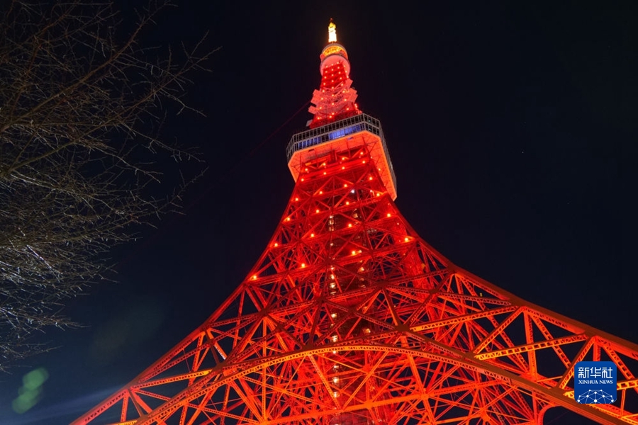 2023年1月21日,日本東京塔亮起“中國(guó)紅”。新華社記者 李光正 攝