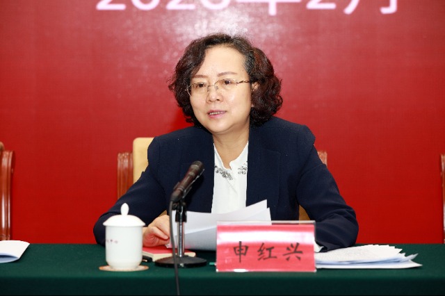 青海省委教育工作領(lǐng)導(dǎo)小組秘書組組長(zhǎng)、省教育廳黨組書記、廳長(zhǎng)申紅興在2023年青海省教育工作會(huì)議上作工作報(bào)告。青海省教育廳供圖