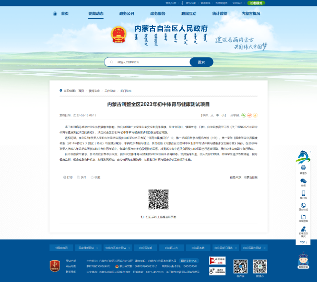內(nèi)蒙古調(diào)整全區(qū)2023年初中體育與健康測試項(xiàng)目