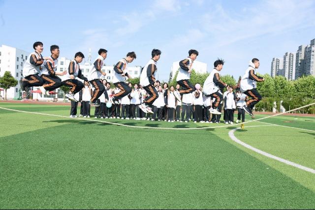 江蘇省連云港市東??h第二中學(xué)高三學(xué)生在跳繩游戲中放松心情、釋放壓力。張玲 攝
