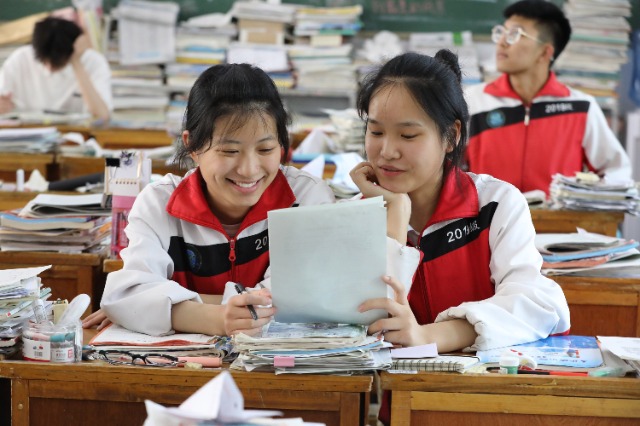 河南省焦作市溫縣第一高級中學(xué)高三學(xué)生在課間交流。徐宏星 攝