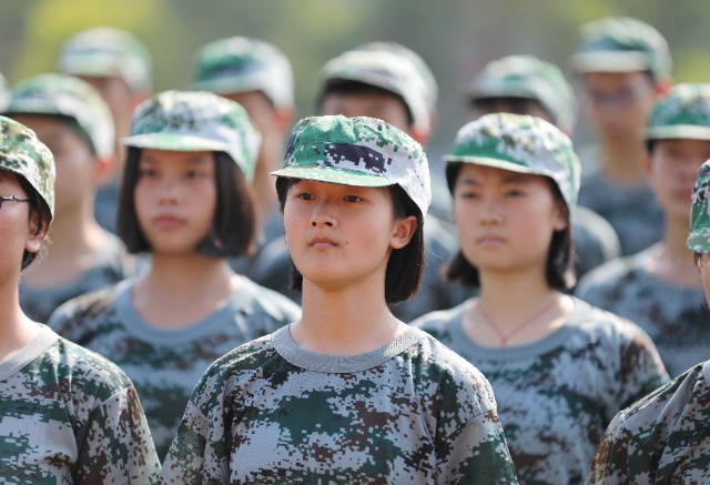 湖南省永州市道縣第一中學(xué)高一新生在軍訓(xùn)。何紅福 攝