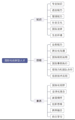 綜合相關(guān)研究,筆者認(rèn)為,在經(jīng)濟(jì)全球化背景下,國際化創(chuàng)新型人才的內(nèi)涵聚焦“國際化”“創(chuàng)新”兩個(gè)維度,主要涉及知識、能力、素養(yǎng)等方面。