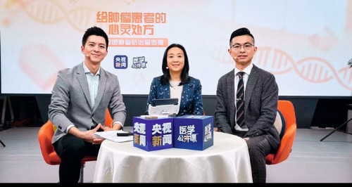 吳舟橋(右一)參加央視新聞?lì)l道腫瘤防治周直播活動
