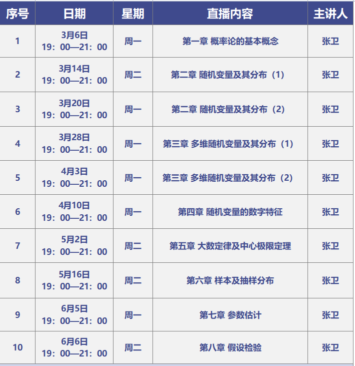 “多維隨機變量”相關內容學習進程已過半,4月3日19:00-21:00,“概率論與數(shù)理統(tǒng)計習題課”第五講,張衛(wèi)老師繼續(xù)帶你學習“多維隨機變量及其分布”。