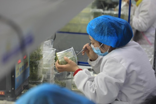 3月2日,在定西市渭源縣五竹馬鈴薯良種繁育專業(yè)合作社,工作人員正在進(jìn)行馬鈴薯脫毒苗切段繁育。新華社記者張智敏 攝