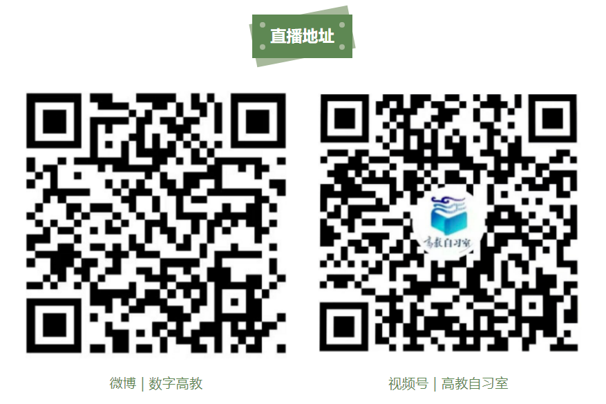 本次活動將通過數(shù)字高教微博、高教自習(xí)室視頻號進行全網(wǎng)直播,掃碼即可觀看。