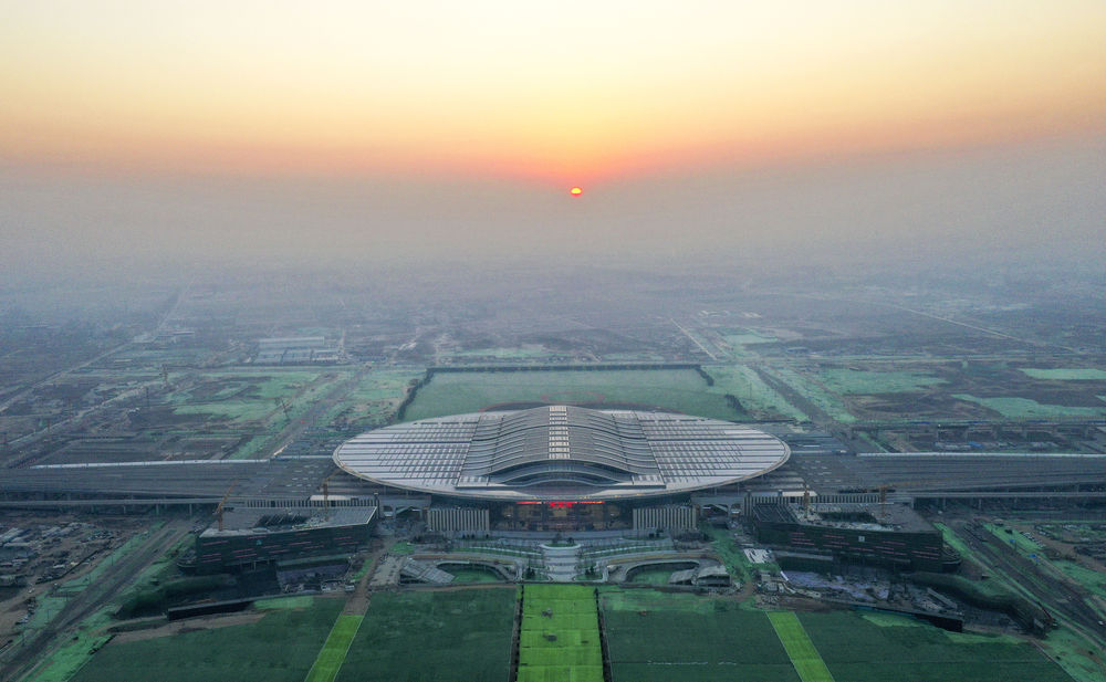 雄安站全貌(2021年4月1日攝,無(wú)人機(jī)照片)。