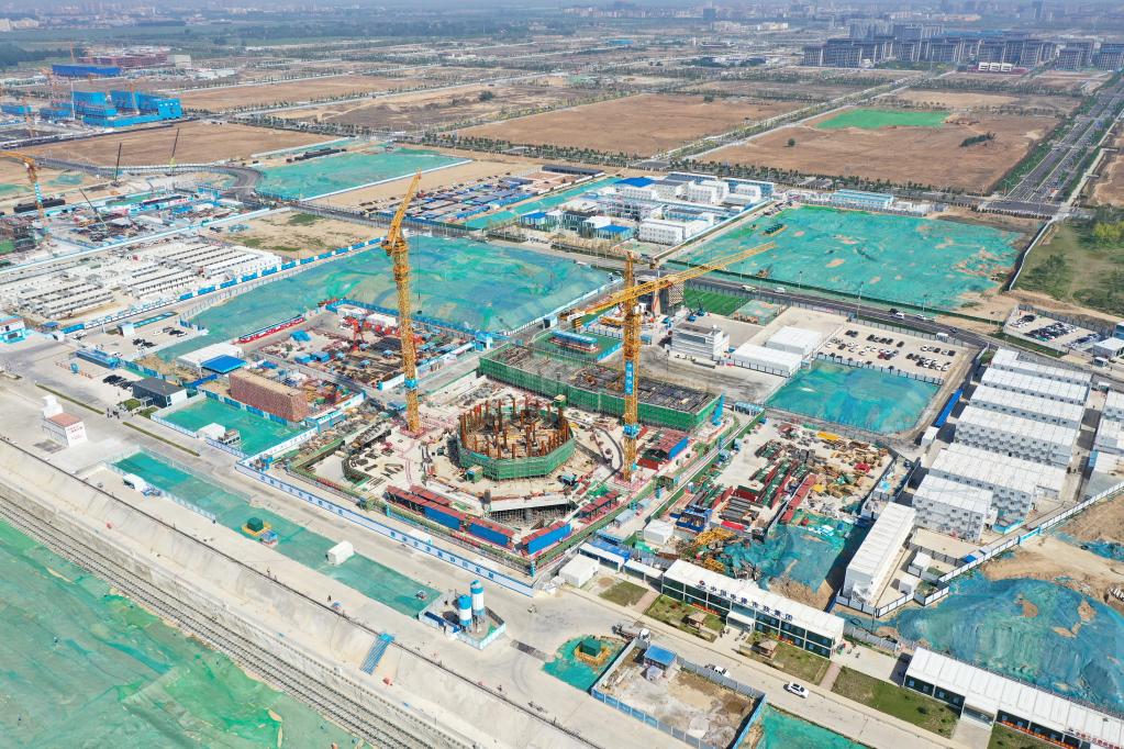 位于雄安新區(qū)啟動區(qū)的中國中化雄安總部001大廈項目現(xiàn)場(2023年5月9日攝,無人機照片)。新華社記者 朱旭東 攝