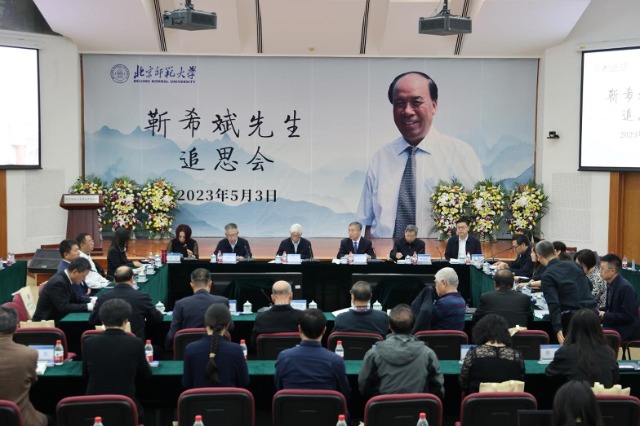 5月3日上午,靳希斌先生追思會(huì)在北京師范大學(xué)英東學(xué)術(shù)會(huì)堂舉行。與會(huì)領(lǐng)導(dǎo)、嘉賓和師生代表懷著萬分沉痛的心情,深切緬懷我國(guó)著名馬克思主義教育理論家、教育經(jīng)濟(jì)學(xué)家靳希斌先生。